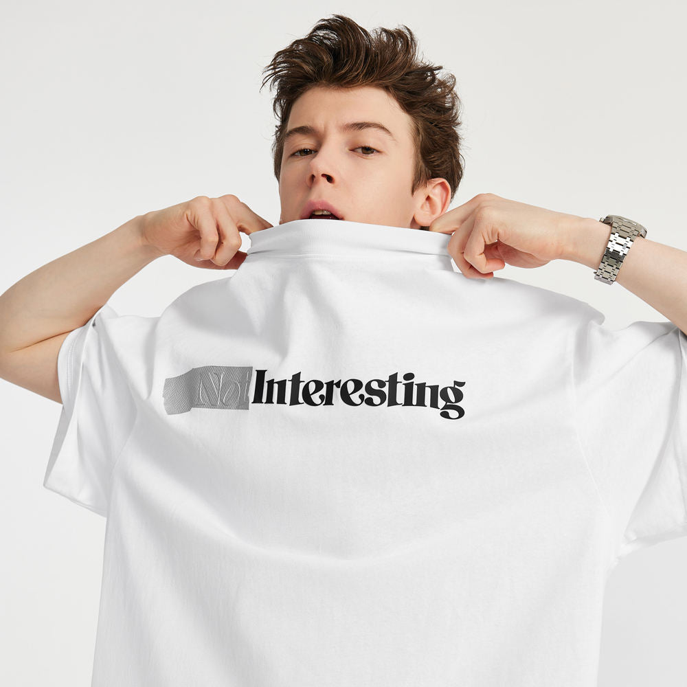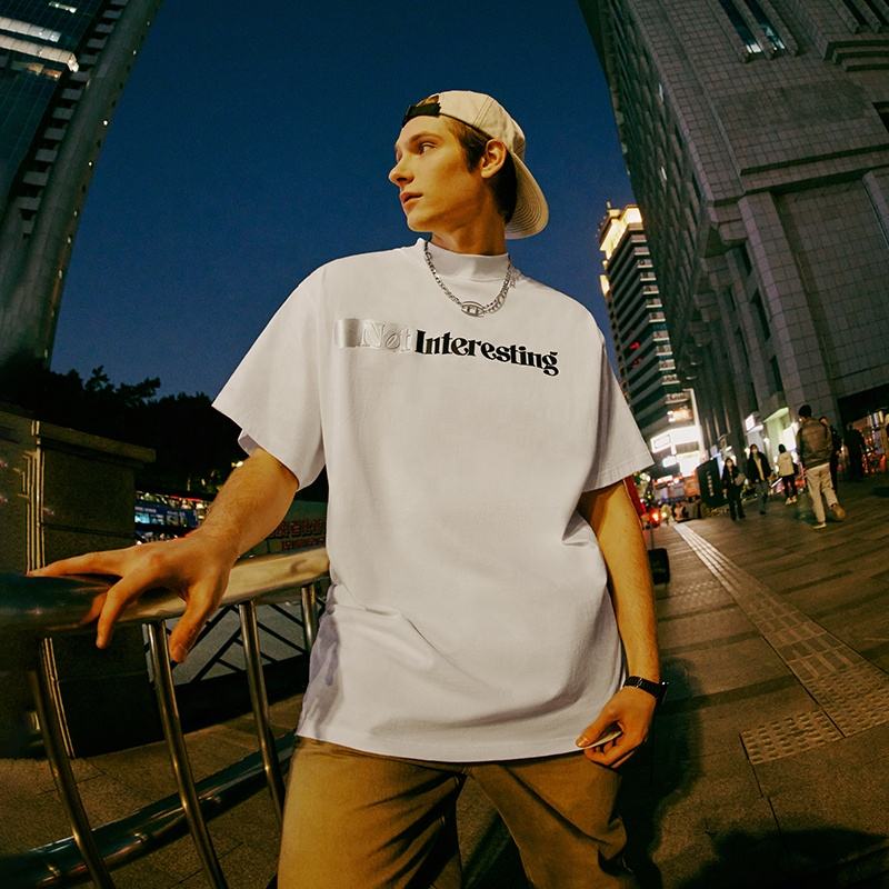 This oversized black tee combines minimalist attitude with bold irony through its “Not Interesting” print. Perfect for effortless streetwear looks with comfort and edge.